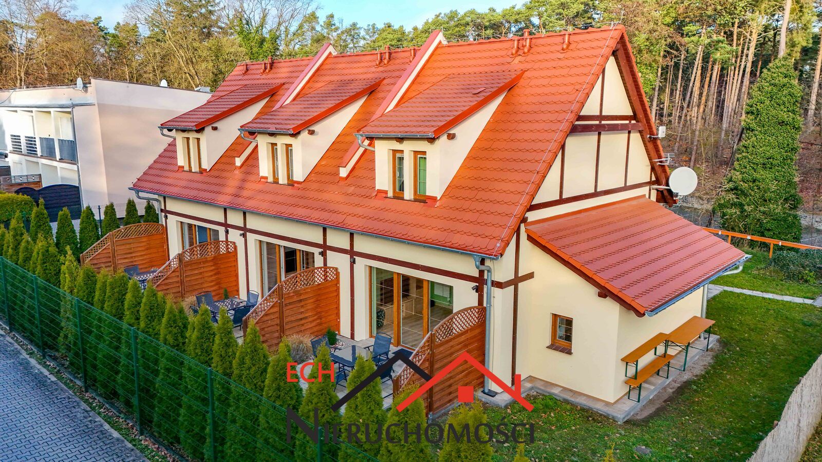 Na sprzedaż nowoczesny budynek w zabudowie szeregowej, składający się z trzech niezależnych apartamentów. Nieruchomość została wybudowana w 2023 roku i posadowiona jest na działce o powierzchni 861 m². Powierzchnia całkowita budynku wynosi 206,94 m². Zlokalizowany w jednej z najbardziej atrakcyjnych turystycznie miejscowości województwa lubuskiego Lubniewicach przy ulica Zamkowej.