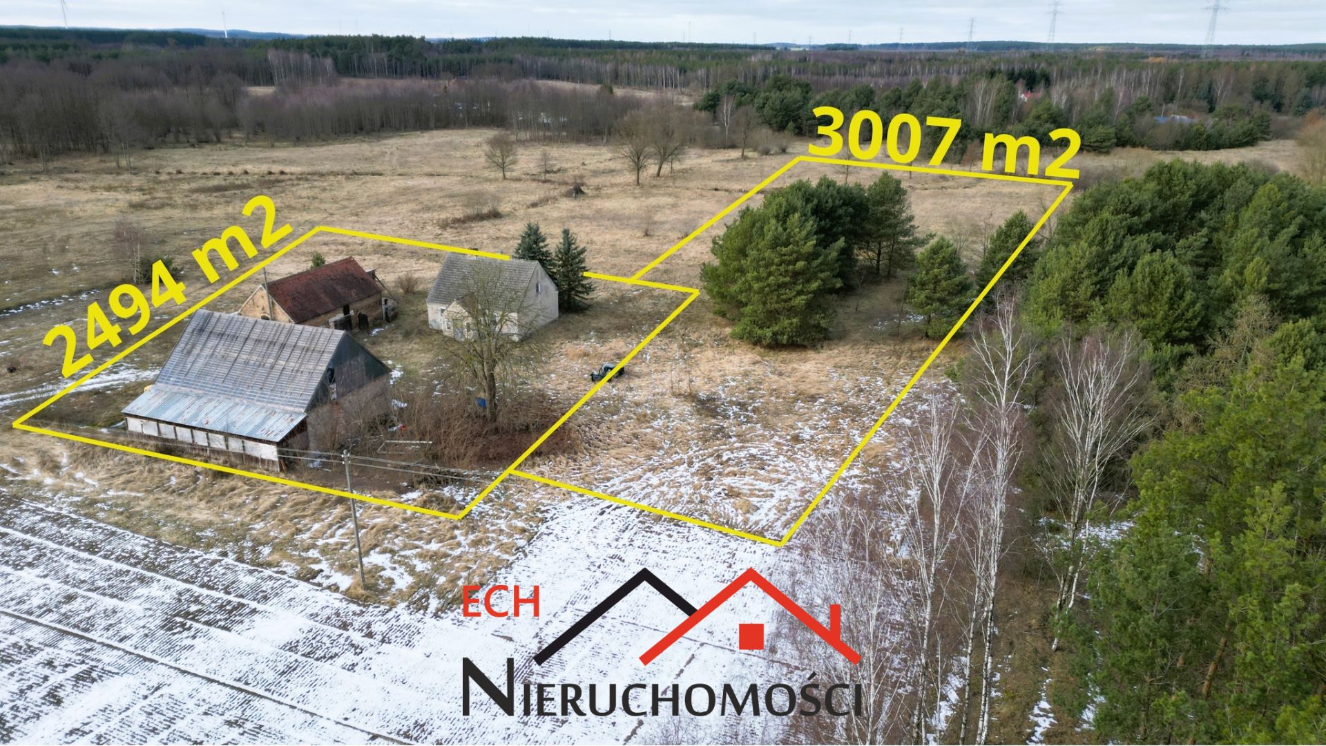 Druga działka – 3007 m² (niezabudowana)